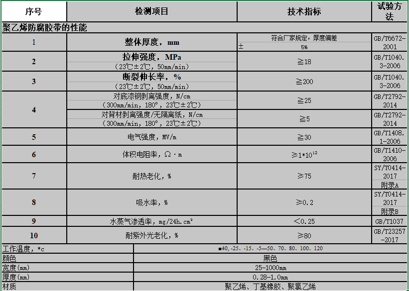 聚乙烯膠粘外帶、配套防腐底漆。
